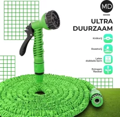 Strex Flexibele Tuinslang 15M Met Sproeikop – Uitrekbaar – Incl. Koppelingen, Ophanghaak & Opbergzak