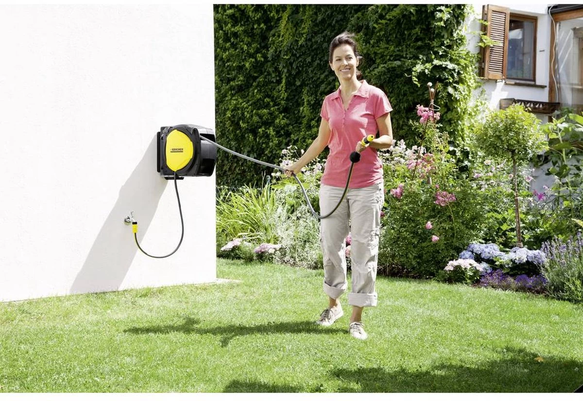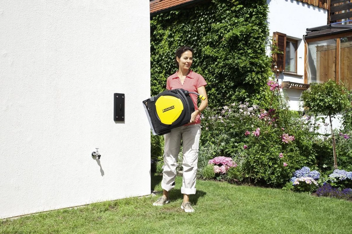 Automatische Slanghaspel CR 7.220. Automatische slanghaspel CR 7.220 voor het zachtjes en automatisch op- en afrollen van uw slang. Draait van 0° tot 180°. Aanpasbare draaistop. Lengte van de slang: 20m.
