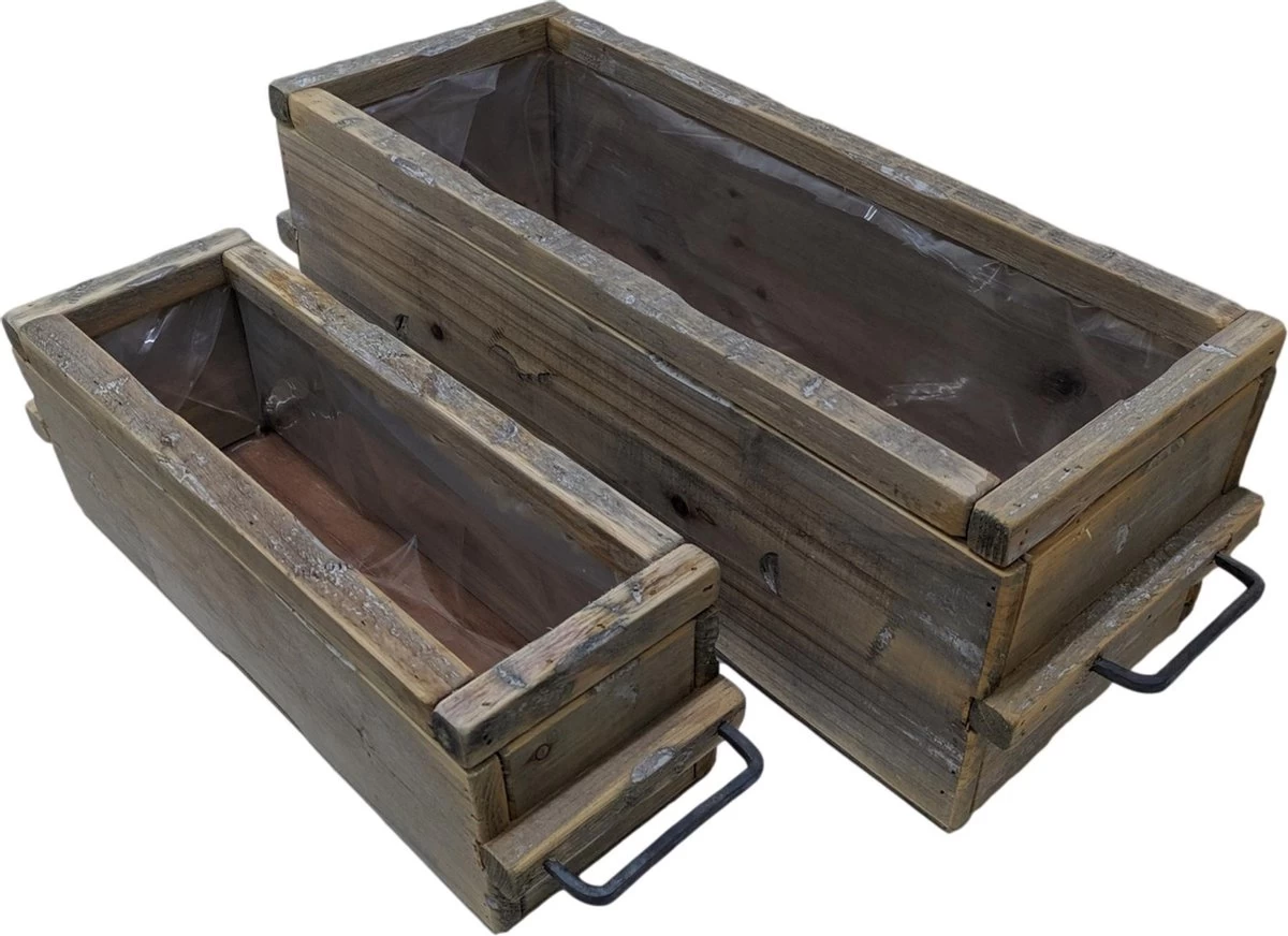Als binnenmaat hebben deze van dennenhout gemaakte bloembakken de volgende afmetingen, 36x10x13 cm voor de kleine van de serie en 44×16 x15 cm voor de grote bak.