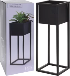 H&S Collection Home&Styling Bloempot Op Standaard 60 Cm Metaal Zwart