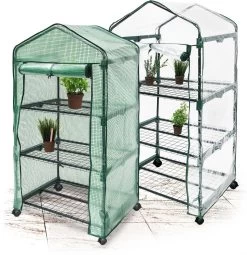 Relaxdays Kas Met Wielen – Tuinkas 3 Etages – Broeikas Kweekkas Tuin / Balkon 130 Cm Hoog – PE