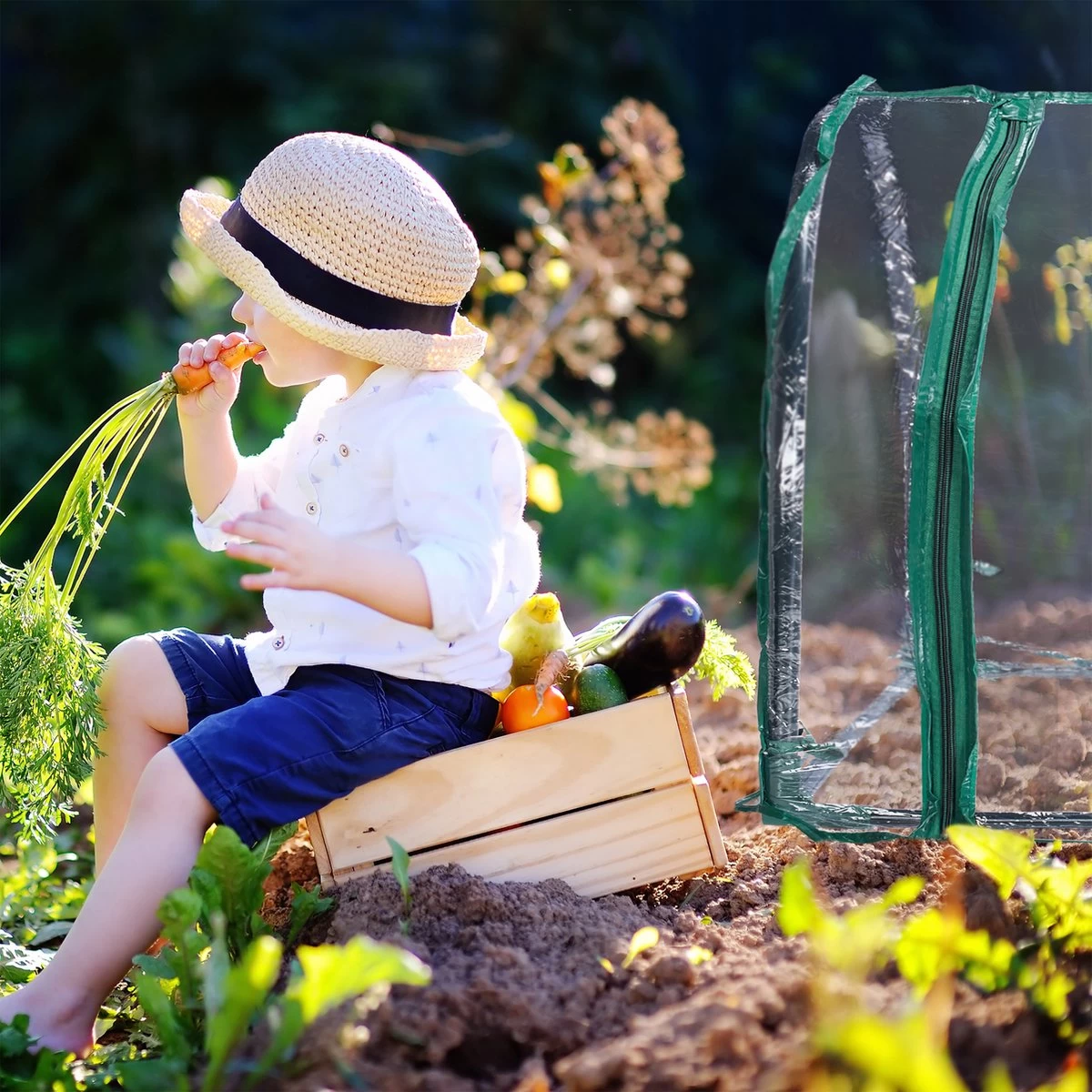 – Beschermt jonge plantjes tegen kou en insecten