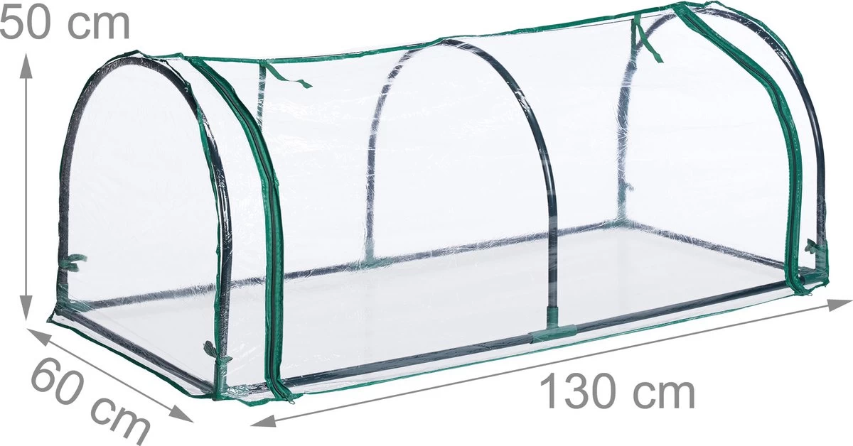 Met deze doorzichtige tunnel kweekkas kun je thuis zelf groente en planten kweken. In de kleine tuinkas kunnen tomaten, bloemen en kruiden optimaal groeien. De foliekas beschermt plantjes tegen weersinvloeden en ongedierte en zorgt bovendien voor een ideaal klimaat. De temperatuur kan door de oprolbare deur aangepast worden. Dankzij het praktische steeksysteem kun je de mini broeikas snel en makkelijk in elkaar zetten.