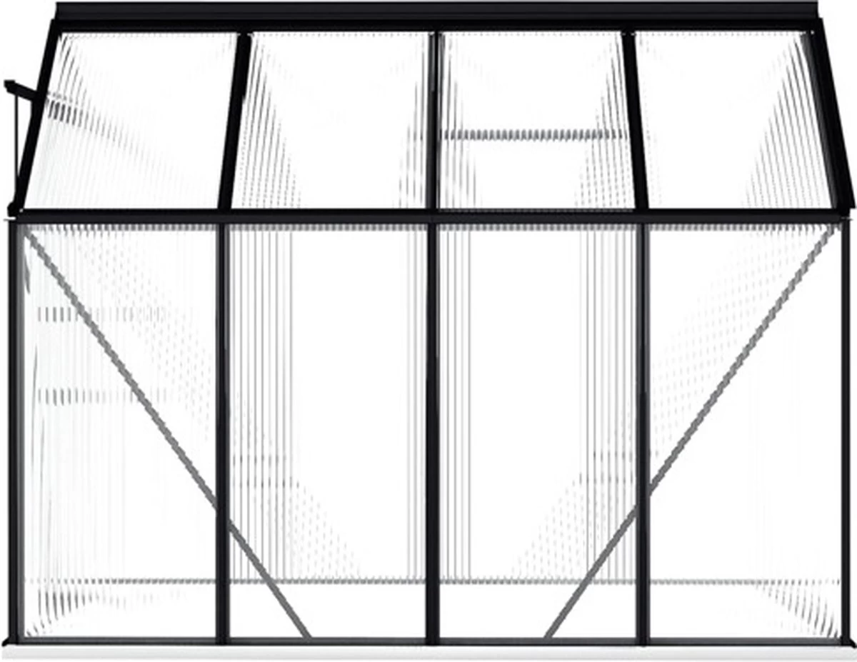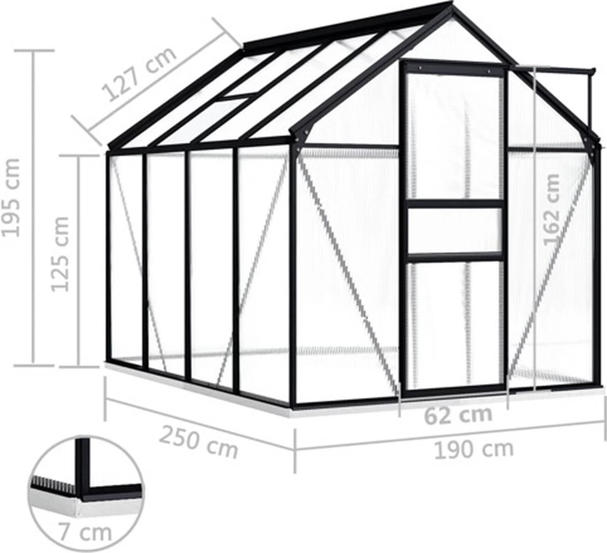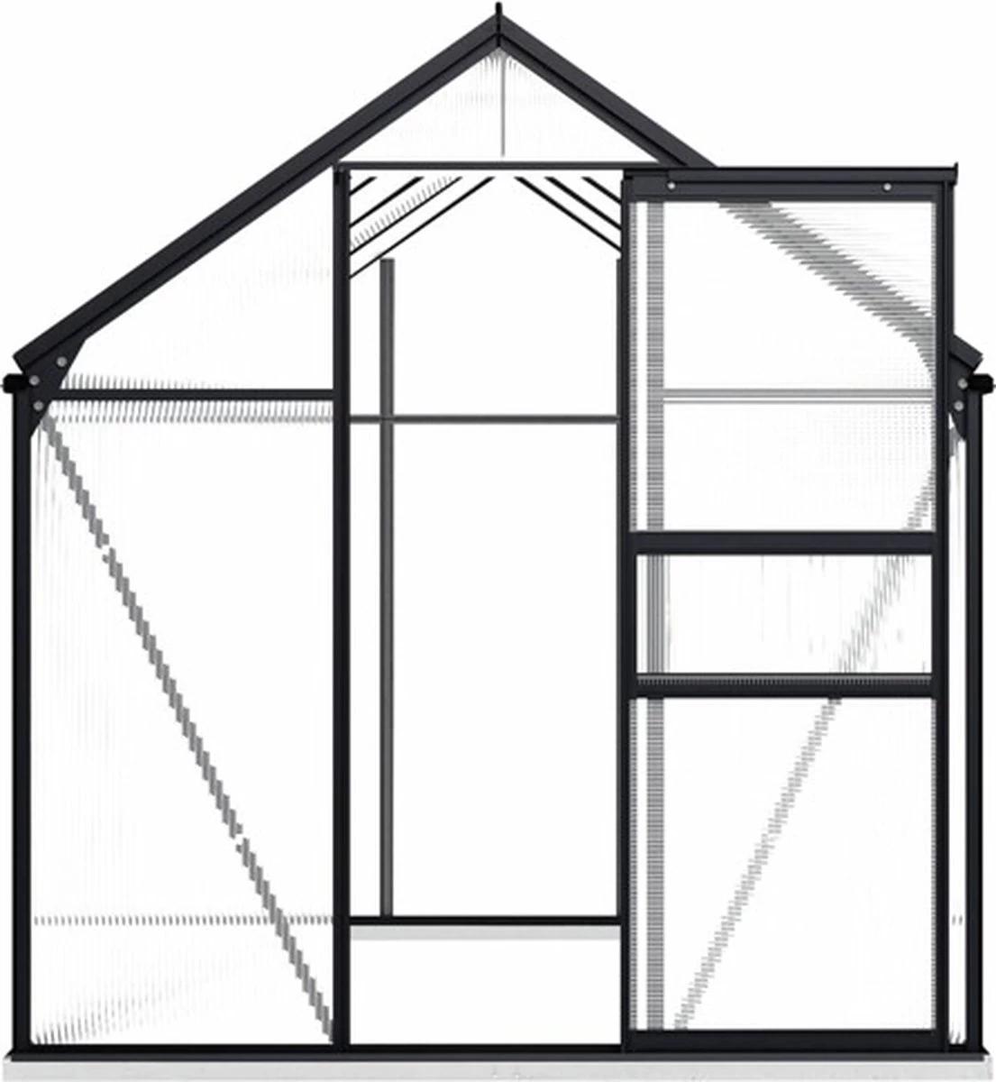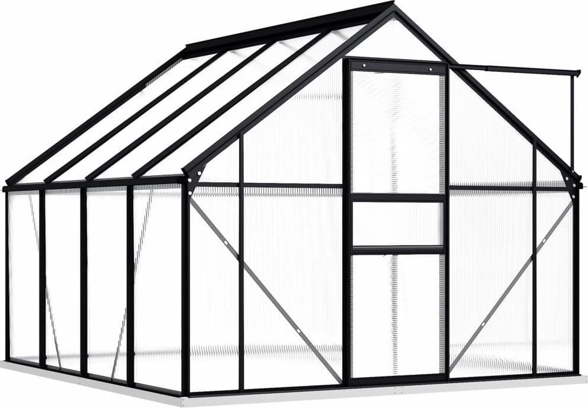 Deze massieve tuinkas is gemaakt van polycarbonaat panelen waardoor hij uv-bestendig en thermisch isolerend is. De kweekkas heeft een stevige en onderhoudsvrije constructie van aluminium met een basisframe (gemaakt van 4 sterke profielen) voor extra stabiliteit. Het gotensysteem zorgt voor effectieve waterafvoer en het ventilatiegat in het dak zorgt voor optimale ventilatie op hete dagen. De dakpanelen worden bevestigd met metalen klemmen, wat zorgt voor stevigheid en duurzaamheid. Onze kas is eenvoudig te monteren.